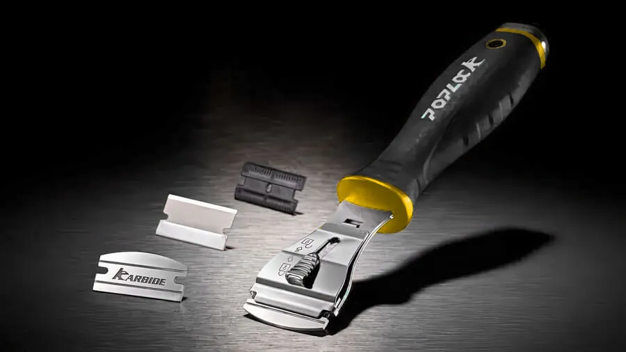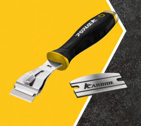 The POPLOCK 12-Piece Scraper Set includes a comprehensive set of multi-material blades and a 2-in-1 carbide blade design with curved and straight tips, making it the ultimate solution for tackling a wide range of scraping tasks, such as removing gaskets, adhesives, paint, stickers, rust, and tough residues.