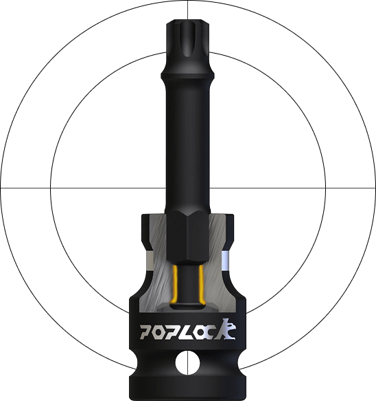 Unlike traditional sockets that allow small misalignments and wasted torque, Poplock’s 0.02 mm precision keeps every bit perfectly centered.
